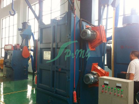 滾筒式和鏈板式拋丸機適用于清理不怕碰撞的中小型鑄件。滾筒式拋丸機靠筒體內螺旋狀的導筋,使鑄件翻轉并向前運行。鏈板式拋丸機則通過鏈板的運動,使鑄件翻轉和運行。轉臺式、臺車式和吊掛式拋丸機用于清理大中型鑄件,通常設有固定的拋丸室,被清理的鑄件在拋丸室內回轉或移動。拋丸室一般裝有幾個拋丸器,裝在不同的位置上,從不同的方位拋射彈丸,以提高拋丸機的清理效率和清理質量。吊掛式拋丸機可根據被清理鑄件的需要,在懸鏈上配置若干個吊鉤,清理時鑄件掛在吊鉤上,在向前運行的同時自行翻轉。鑄件在拋丸室外裝卸,在室內進行清理。